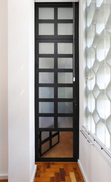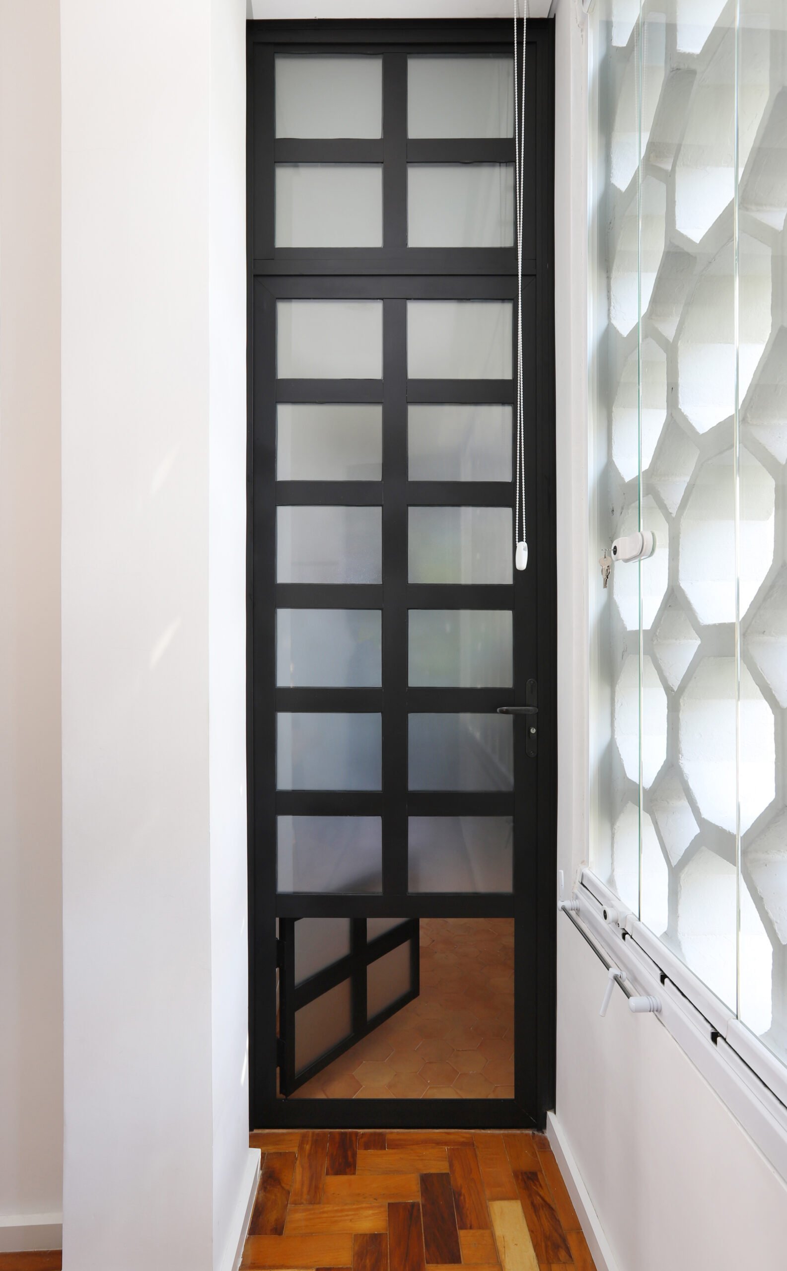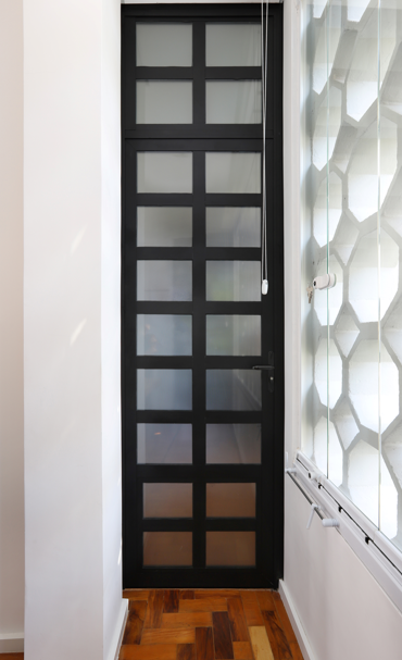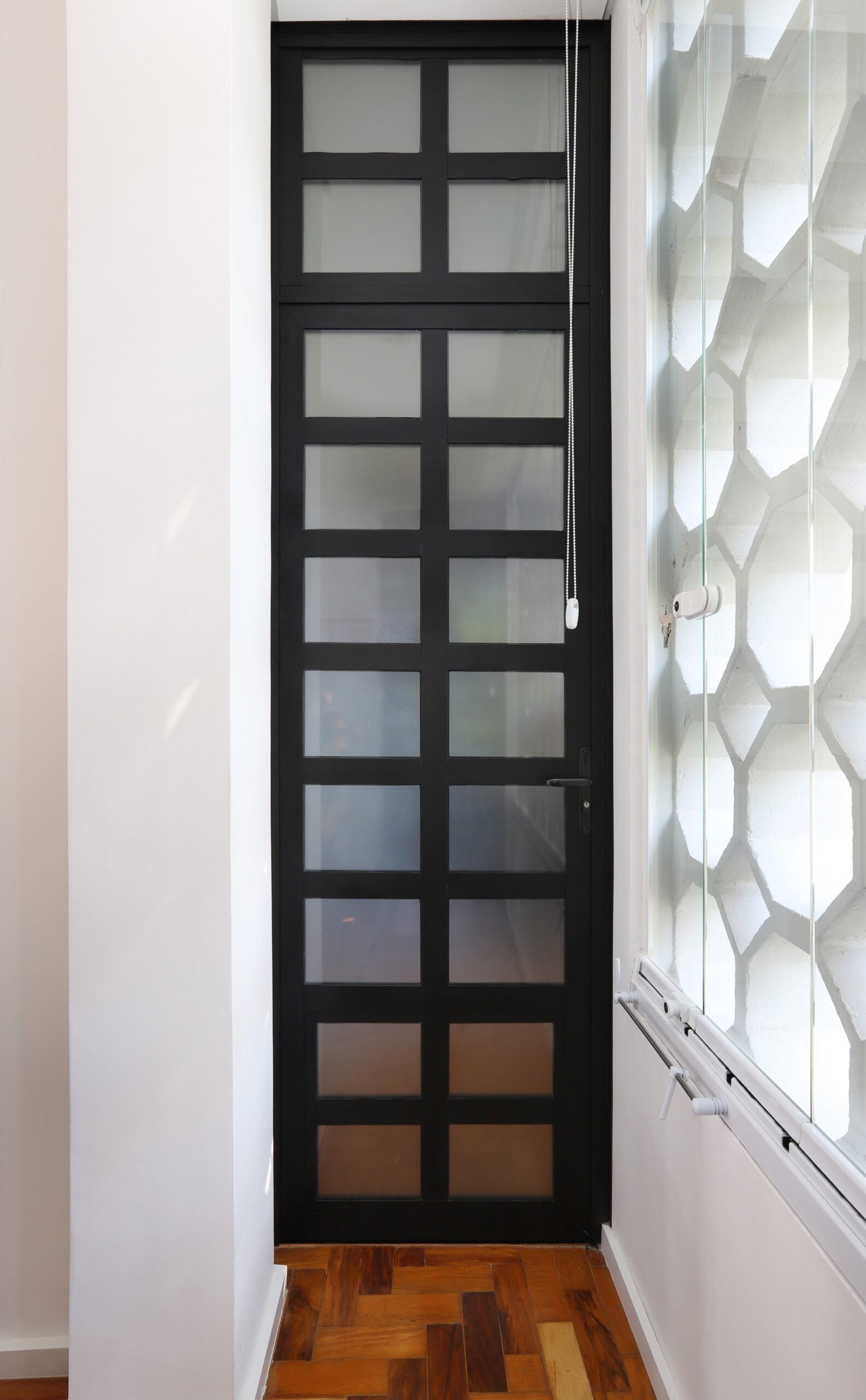 “Esta porta é a prova de que, com alguns ajustes e toques de personalização, podemos facilitar a funcionalidade de um lar com pets”, conta Fernanda. A ideia da dupla é que essa porta permaneça fechada para não dar visibilidade à lavanderia, mas ao mesmo tempo, permita que o cachorrinho da família utilize o pipi-room projetado para ele.