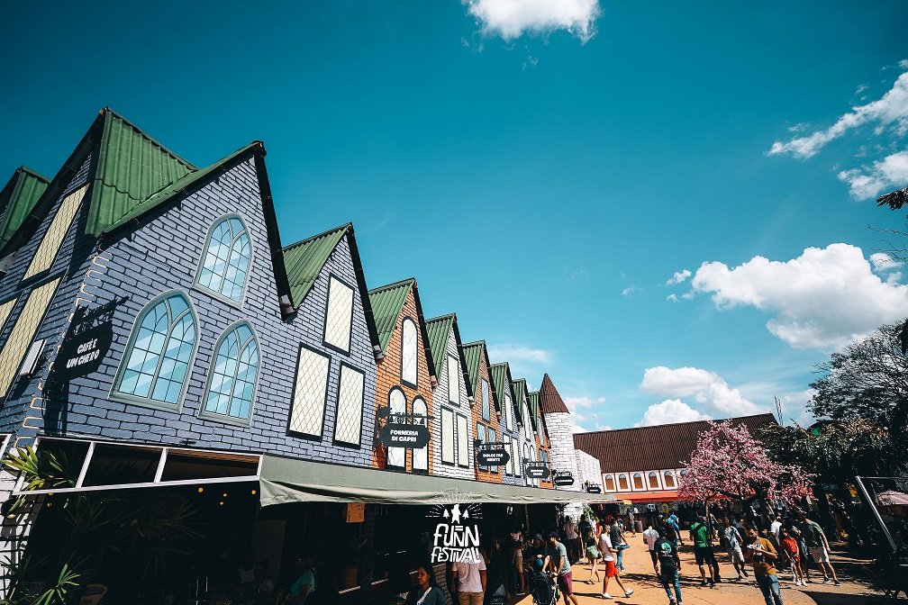 Quem já pôde conferir de perto a 4ª edição do Funn Festival, foi surpreendido pela megaestrutura montada para o evento, que acontece entre 12 de maio e 18 de junho, no Parque da Cidade, em Brasília. Com uma cenografia inspirada nas vilas europeias de países como Alemanha, França e Holanda, aliada à temática dos parques mágicos da Disney, a MARIS Arquitetura e Design traz ao espaço um aconchego e um encantamento dignos de experiências memoráveis.