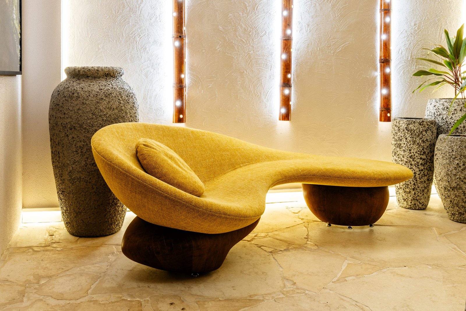 Em três ambientes assinados por renomados arquitetos, os móveis Breton agregam identidade, inovação e excelência artesanal, reforçando o compromisso da marca com estética e funcionalidade. No Lavabo SPA, desenvolvido pela dupla Elaine Sandri e Bruna Garcia, o destaque da Breton é a chaise Fly, de Fernanda Marques. Inspirada na leveza e harmonia da natureza, a peça reflete a elegância de uma folha que repousa suavemente sobre duas rochas de madeira, representando a fusão entre a ancestralidade das texturas da terra e o toque de sofisticação contemporânea, criando um espaço de paz e introspecção.