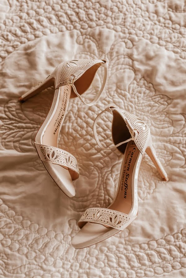São três modelos brancos de sapatos para noivas com detalhes em renda e cristais e o famoso solado revestido com glitter prata, que chegaram às lojas em Outubro com a coleção Alto Verão 2020.