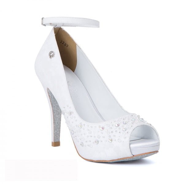 O tradicional scarpin branco para noiva ganha um design sofisticado e salto médio para acompanhar as mulheres mais clássicas até o altar com muito conforto e estilo.