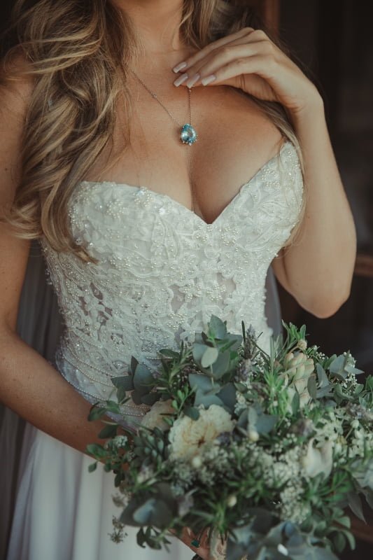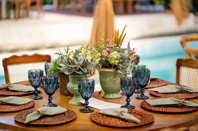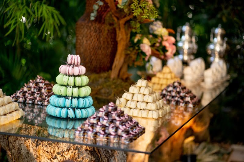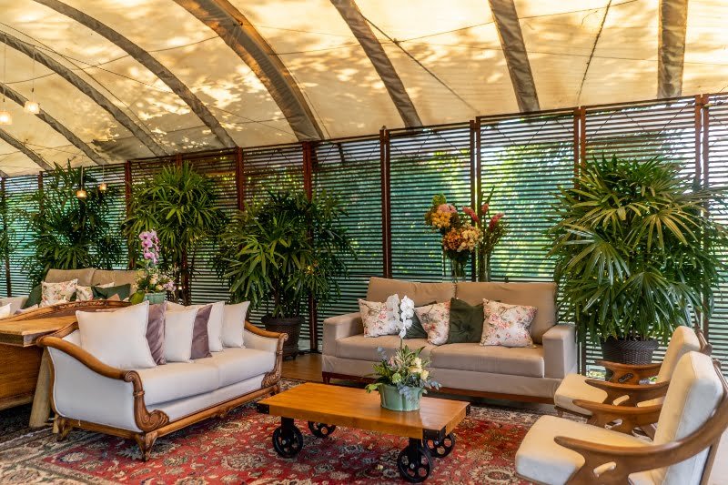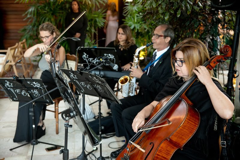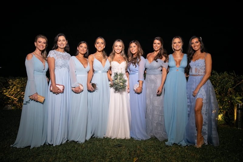Com a proposta de casamento ao ar livre, Eduardo e Heloisa optaram por produções mais despojadas. Eduardo surgiu em um conjunto confeccionado pelo estilista Eduardo Guinle, enquanto a noiva, pelos acordes da Entreatto Coral e Orquestra, caminhou em direção ao altar em um modelo assinado pelo Atelier Marie Lafayette – o mesmo que produziu o vestido da primeira-dama –, de corpete rendado e saia lisa e fluida