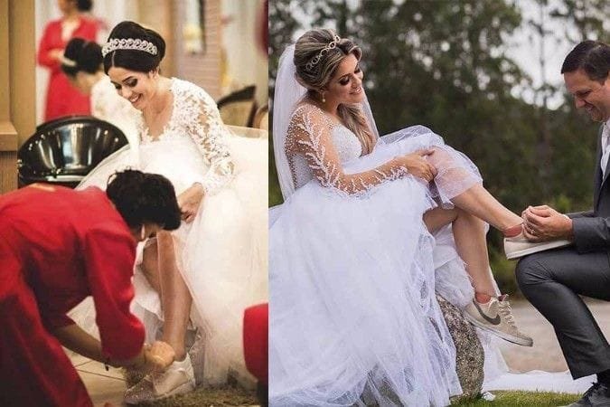 Se você faz parte do segundo time, não se obrigue a sofrer durante o dia mais esperado da sua vida. O importante é se sentir segura para subir ao altar. E tem jeito melhor para isso do que se sentindo confortável? Então, nada melhor do que tênis nos pés!