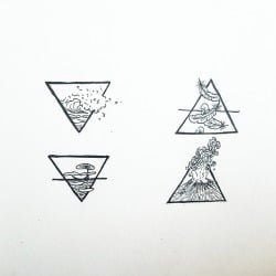 A estação relacionada com a Terra é o inverno e a direção associada é o Norte. O elemento é simbolicamente representado por um triângulo invertido com uma linha horizontal que passa por ele.