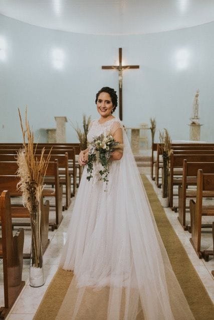 Rubiana, a noiva de Brasília, que escolheu fazer o seu vestido às cegas, conta que sua experiência com o Ateliê começou em 2019. “Conheci a Juliana Santos e me identifiquei com o discurso dela sobre se priorizar. Quando vi um vídeo revelação do “Noiva às Cegas”, fiquei maravilhada! Comecei a acompanhar mais de perto o trabalho dela e percebi que combinava com meu perfil: vestidos leves, fluidos e, sim, ela sabia ler as noivas de uma maneira incrível. Conversamos muito sobre minha história, o casamento e também mandei as referências que achava legal. E, apesar da modernidade, sim sou romântica, um pouco Vintage, gosto do clássico, sou uma noiva um pouco clássica, talvez. Tenho um toque de modernidade, gosto de saber o que está acontecendo, acompanhar tendências. Meu vestido é super atemporal, maravilhoso”, conta.