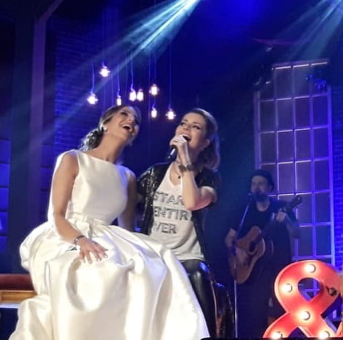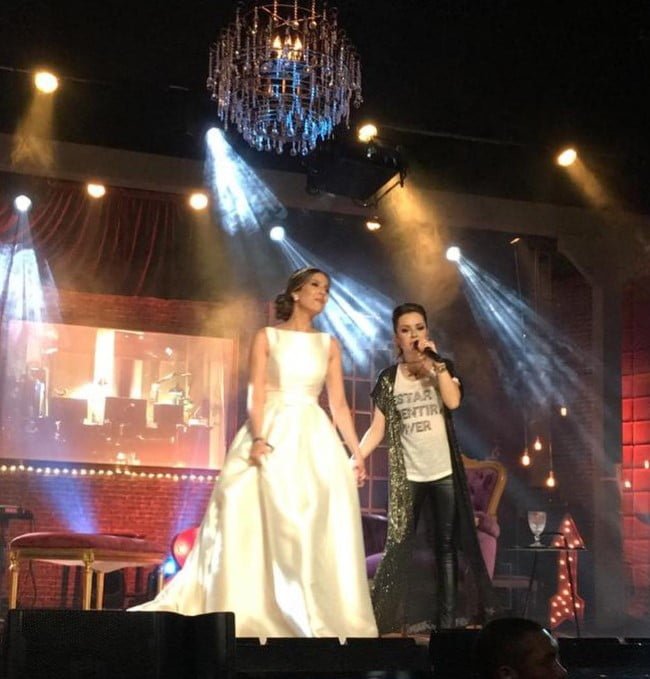 Durante sua performance, Sandy notou a presença de Paula Alexandre, vestida apropriadamente para um casamento, e a convidou para subir ao palco. De vestido e tudo, Paula roubou a cena e contou que já tinha planos de comparecer ao show após a cerimônia religiosa, que aconteceu momentos antes. “Que noiva linda. Como foi isso de casar e vir pra cá?”, perguntou a cantora, animada.