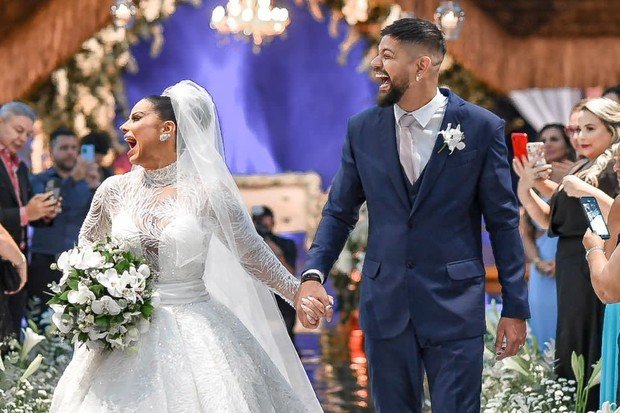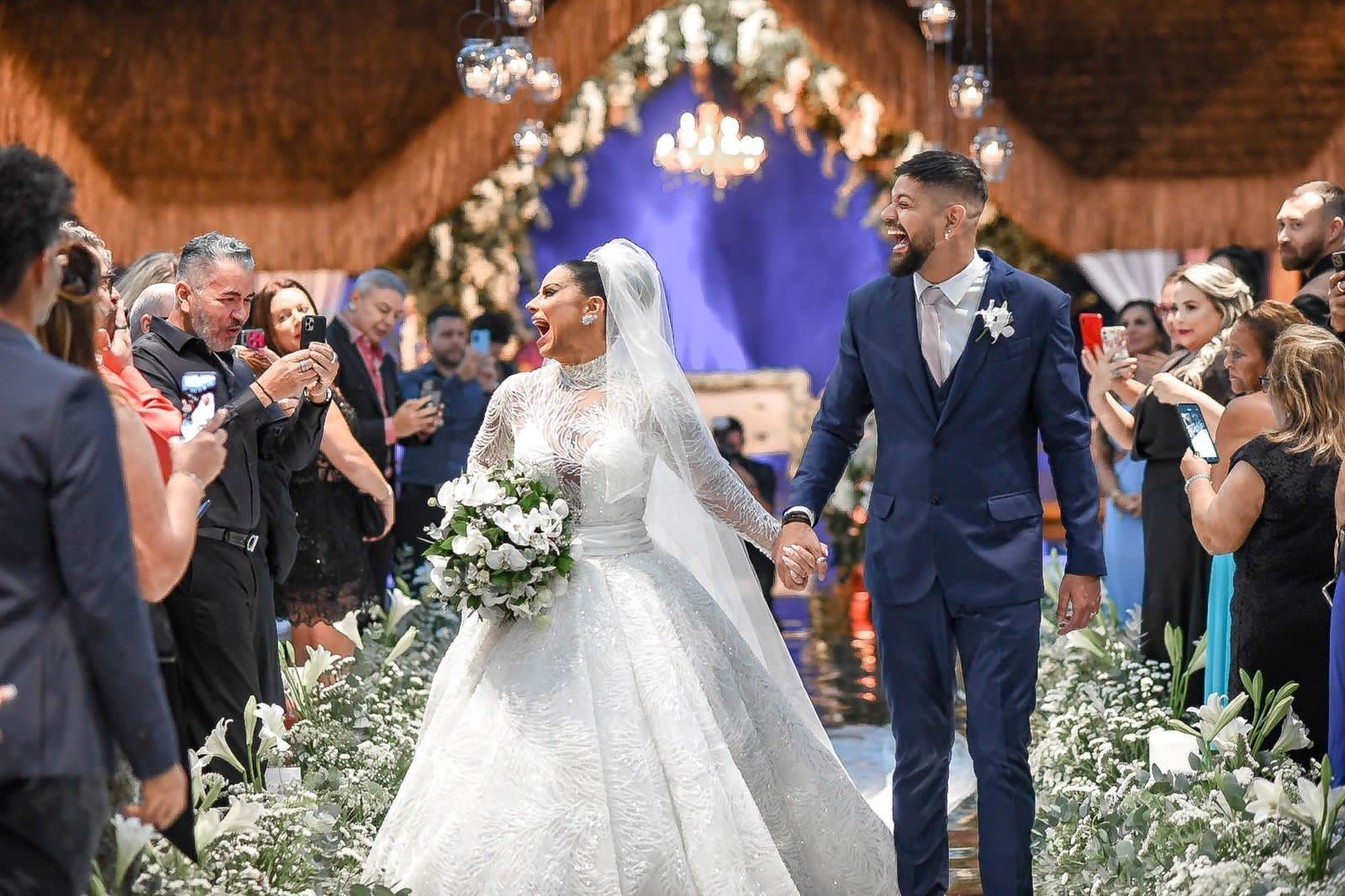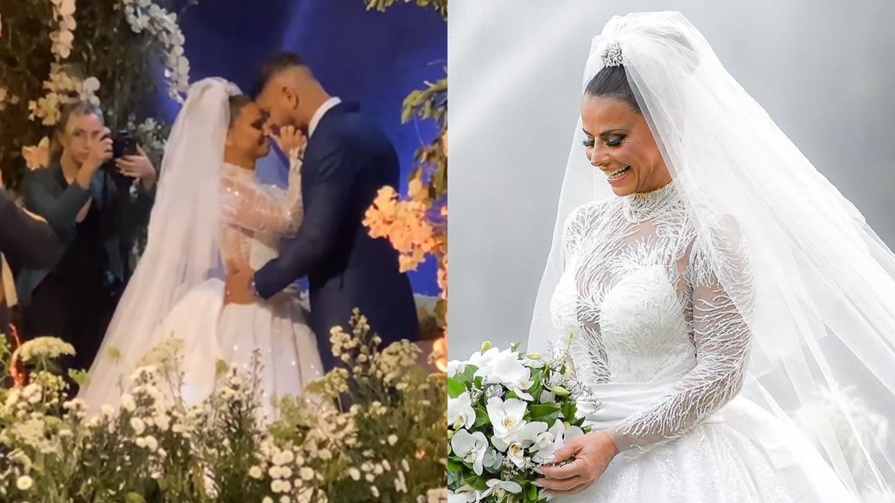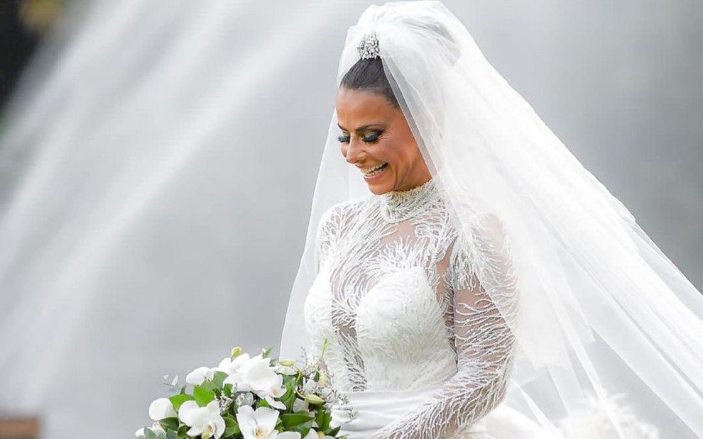 Viviane Araújo, de 46 anos, se casou com Guilherme Militão, na noite da última sexta-feira , no Rio de Janeiro, com um vestido de noiva com 40 mil cristais que ganhou de presente do estilista Lucas Anderi.