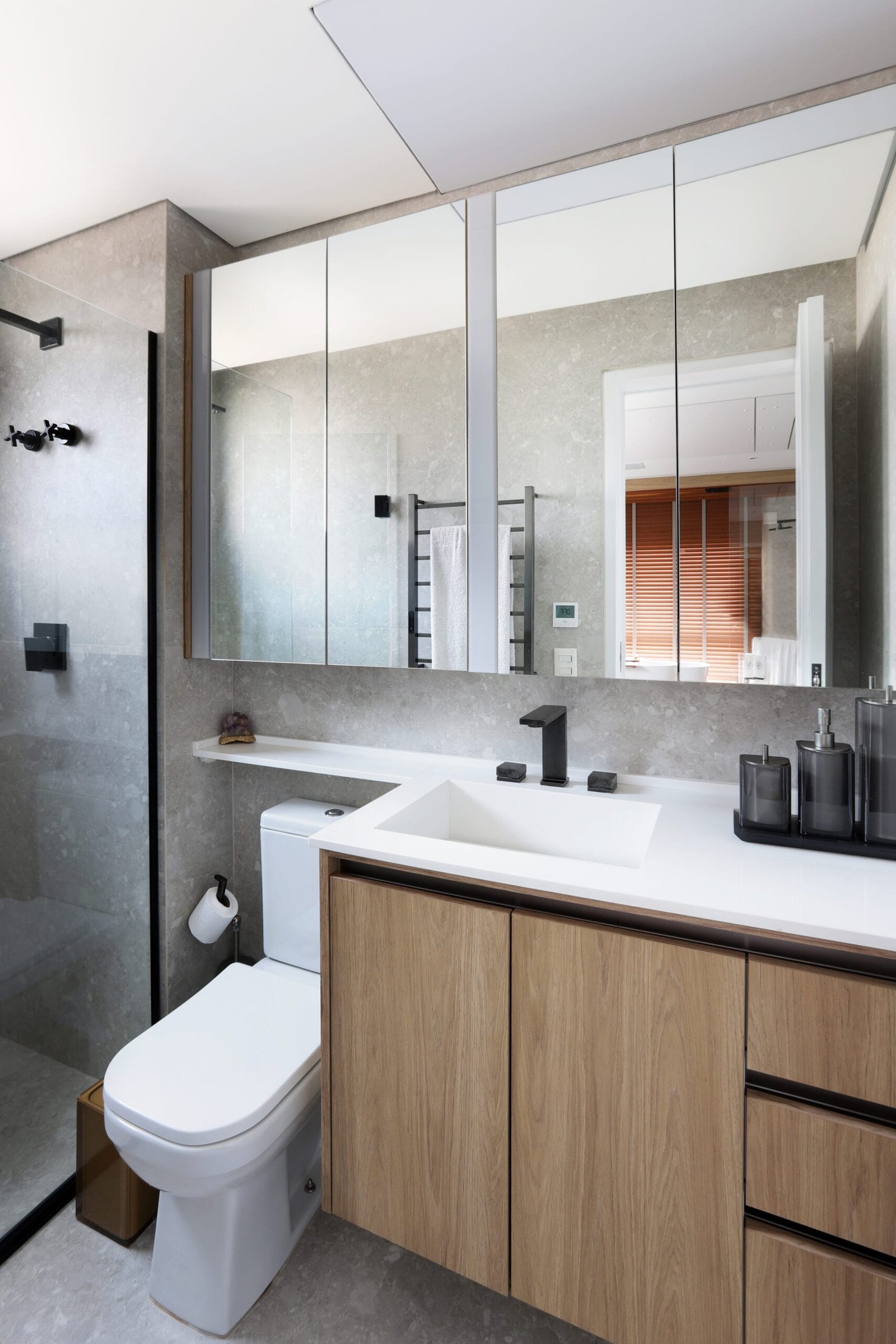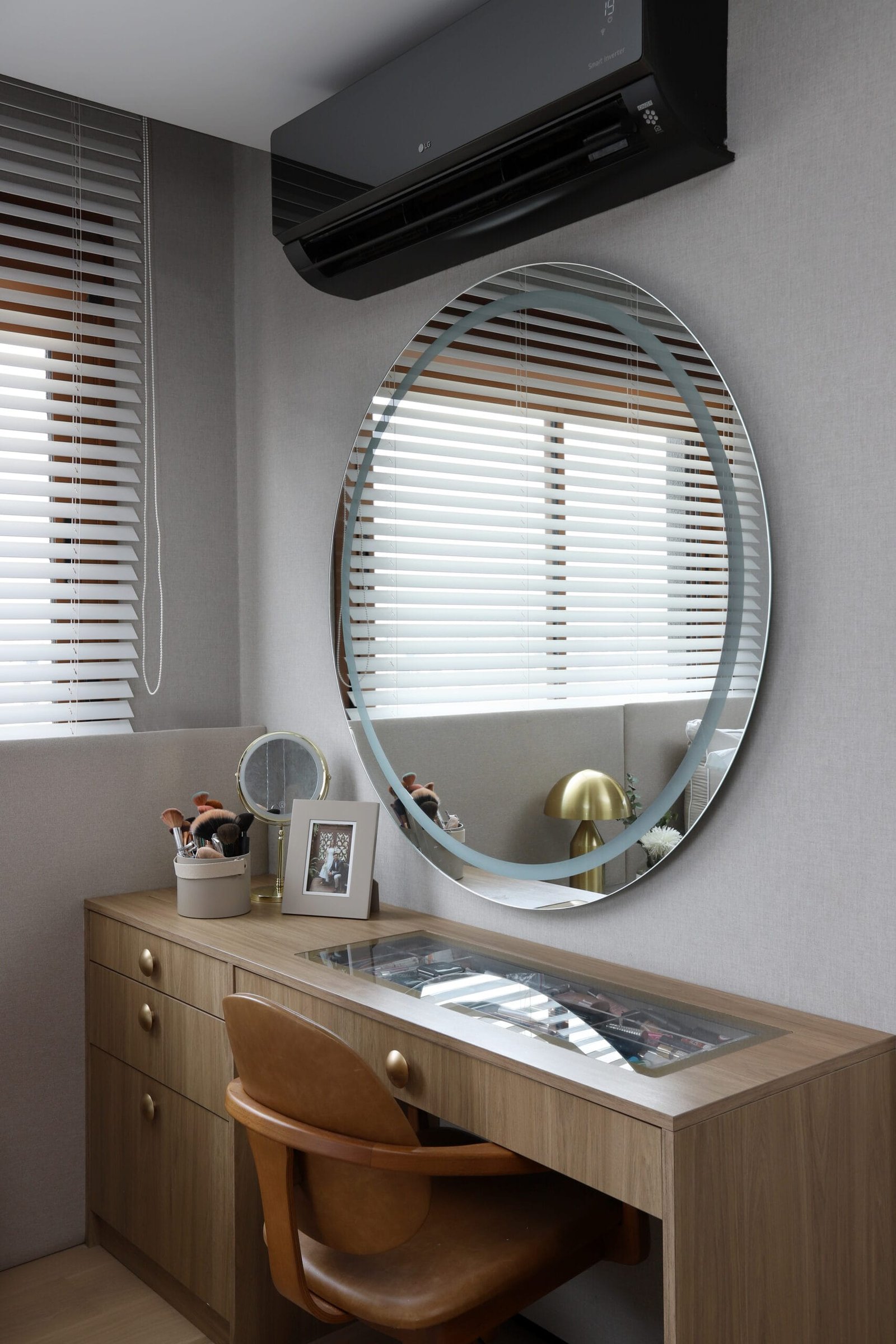 De acordo com Dudi, a reforma demandou uma alteração completa no layout do apartamento, onde foi preciso reduzir o tamanho do living para receber um home-office. Essa reconfiguração também aconteceu na área íntima, uma vez que os três dormitórios se tornaram apenas dois para dar vida à suíte principal com closet, penteadeira e banheira de imersão, que dão um clima de spa.