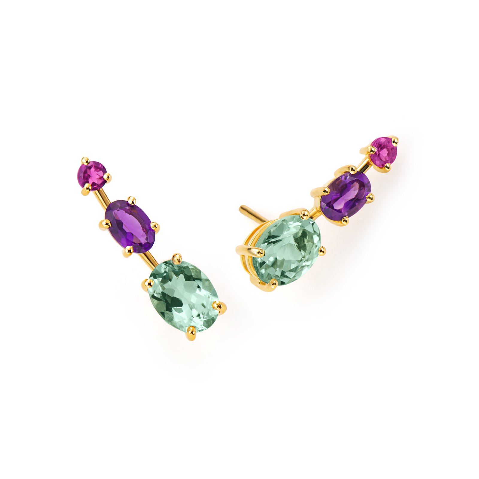 Inspirada na beleza natural, a coleção Pietre explora a mistura de cores em diferentes lapidações que enaltecem a beleza singular das gemas através do brilho da Prasiolita, Topázio sky, Tanzanita, Turmalina Rosa, Rodolita e Ametista, harmonizando o design delicado com o volume das gemas. O uso de pedrarias translúcidas e coloridas trazem um equilíbrio entre o sofisticado e o divertido, trazendo pedras em tons vibrantes e caimentos orgânicos.