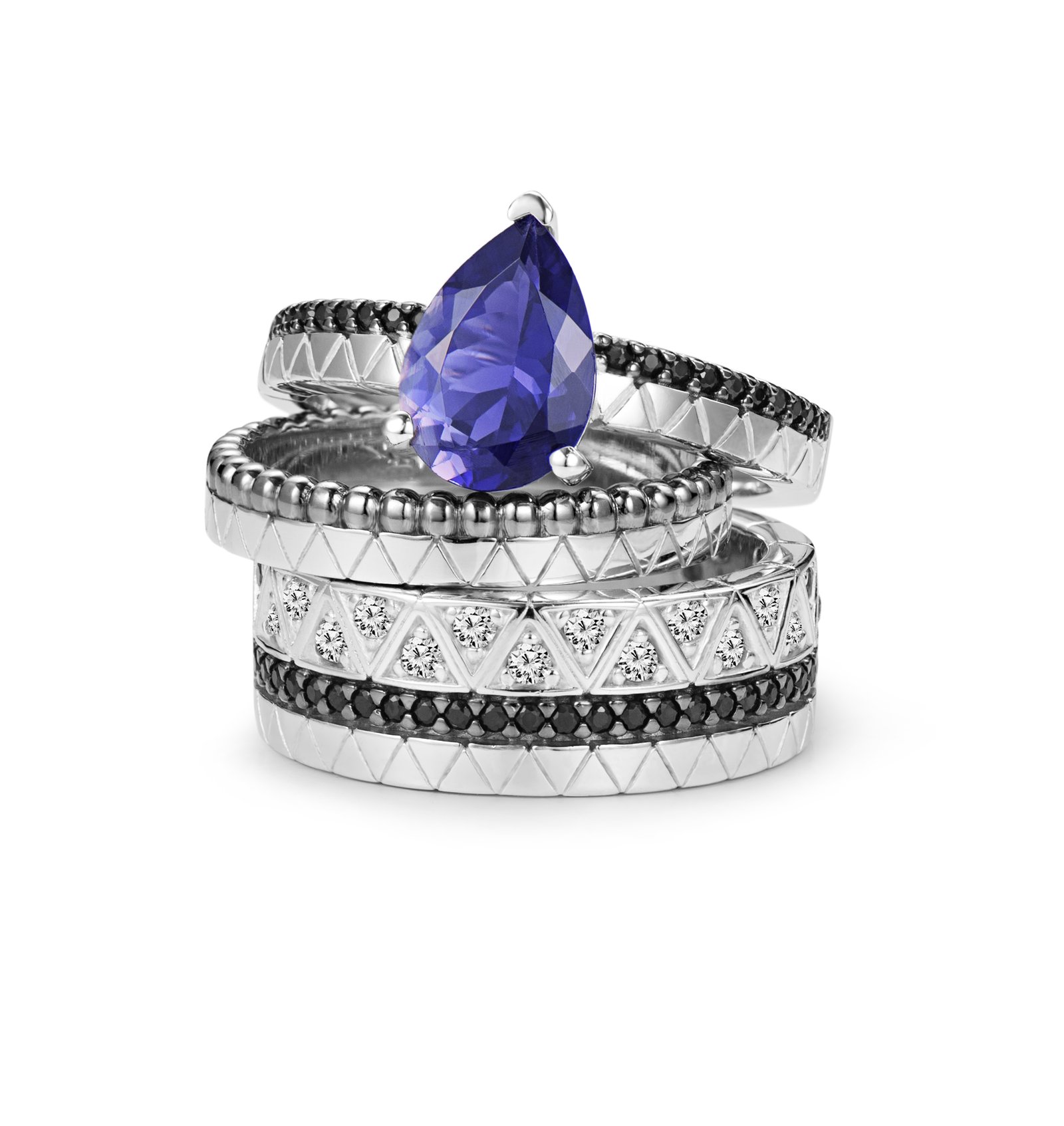 Desde a sua origem, a coleção Icona carrega em seu DNA a versatilidade em explorar composições sem limites. Este é o terceiro lançamento em prata da família e a primeira versão com a exuberância da gema corada Iolita , combinada com as safiras negras e o brilho polido do metal, apresentando toque contemporâneo com um perfil clássico repaginado.